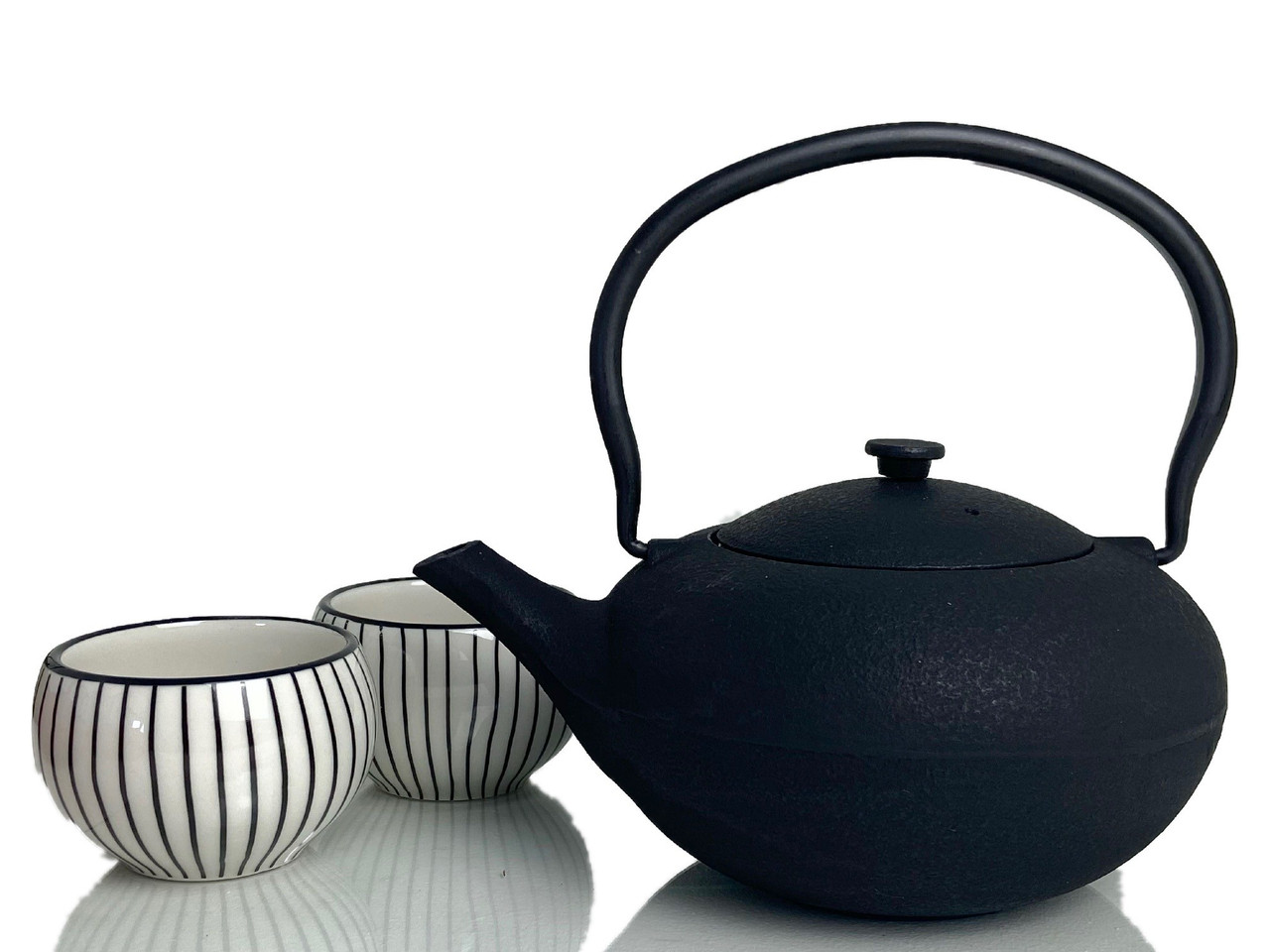 A wonderful gift for tea lovers! This cast-iron teapot comes with two porcelain tea cups, in an elegant gift box. The interior of the teapot is enamelled and it holds 1.0 litres. The teapot features a striped pattern and it comes with a stainless-steel tea filter